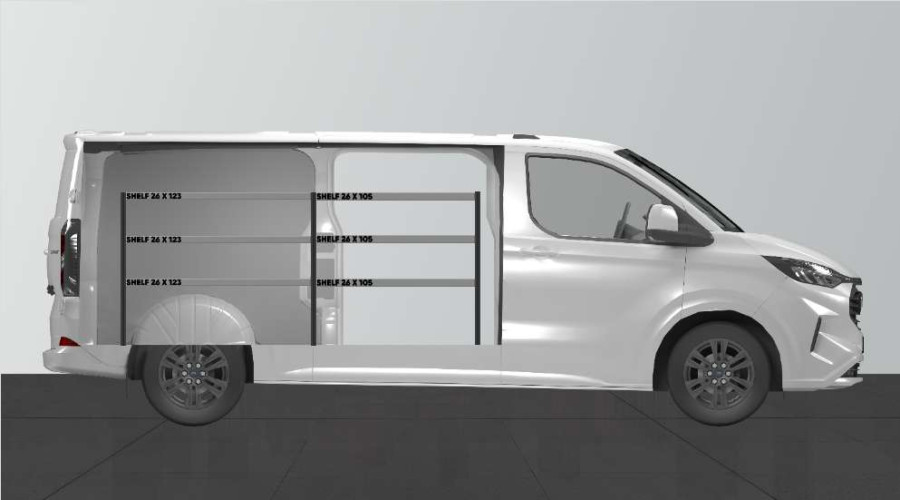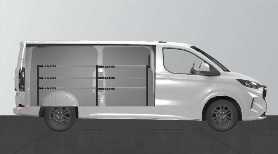 Een smallere bedrijfswageninrichting voor wie de breedte van zijn Ford Custom & VW Transporter L2 wil behouden. De bedrijfswageninrichting is slechts 262,5 mm diep en biedt goede opbergmogelijkheden voor kleinere onderdelen, zoals verpakkingen met schroeven en kleinere producten voor vastgoedbeheerders, elektriciens en loodgieters. Het is mogelijk uw bedrijfswageninrichting aan te vullen met onze slimme modulaire bakken. Het aanvullen van de gereedschapshouder met onze smartbox is ook een populaire optie om de opbergruimte te optimaliseren.