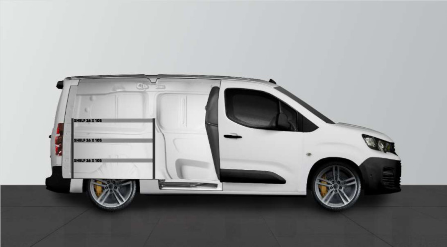 Met een combinatie van laden en legplanken is dit een zeer populaire bedrijfswageninrichting die geschikt is voor Berlingo, Combo, Proace City & Partner L2.