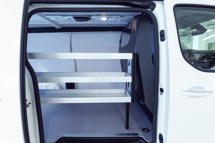 Een smallere bedrijfswageninrichting voor wie de breedte van zijn Peugeot Expert, Citroën Jumpy, Opel Vivaro, Fiat Scudo & Toyota ProAce L2 wil behouden. De bedrijfswageninrichting is slechts 262,5 mm diep en biedt goede opbergmogelijkheden voor kleinere onderdelen, zoals verpakkingen met schroeven en kleinere producten voor vastgoedbeheerders, elektriciens en loodgieters. Het is mogelijk uw bedrijfswageninrichting aan te vullen met onze slimme modulaire bakken. Het aanvullen van de gereedschapshouder met onze smartbox is ook een populaire optie om de opbergruimte te optimaliseren.