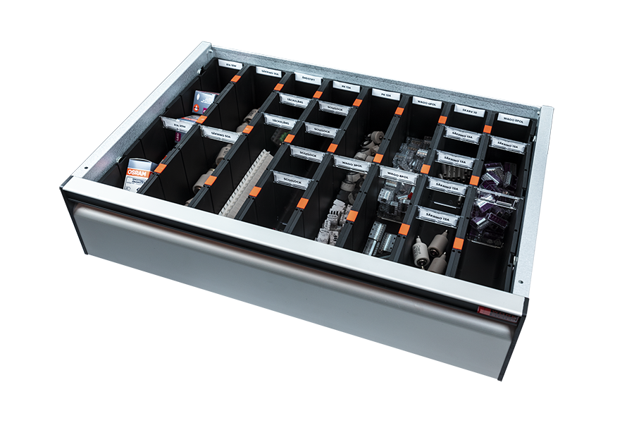 Je kunt deze inzetbakken ook aanvullen met labels & meer verdelers.