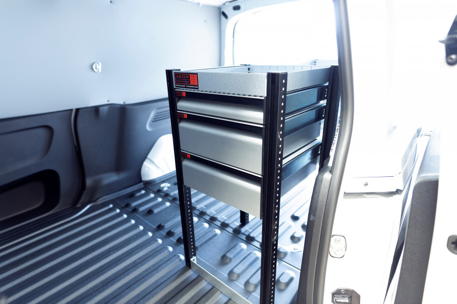 Een van de meest populaire inrichtingen voor uw VW Caddy Cargo & Ford Connect L1. De bedrijfswageninrichting biedt uiteenlopende opbergmogelijkheden, omdat de laden op de kogellagerschuifrails een handige toegang bieden via de zijdeur, terwijl de sleuven in de rijrichting kunnen worden uitgetrokken voor een beter overzicht. Deze kunnen worden aangevuld met ladeverdelers om zoveel mogelijk structuur te brengen in uw kleinere onderdelen. Onze diepe legplanken bieden ook goede opbergmogelijkheden voor gereedschapstassen en kleinere machines. Het verdeelde gewicht van de onderdelen in de laden op de kogellagerschuifrails is 35 kg/stuk. De binnenafmetingen van de laden zijn (mm) B-308, D-387, H-60 en H-130.