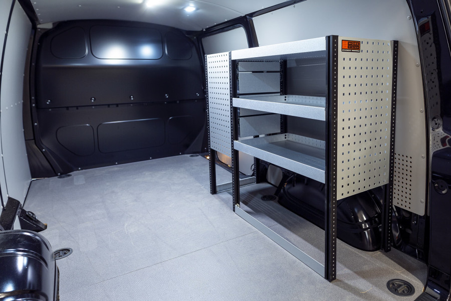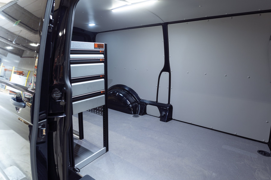 Een van de meest populaire inrichtingen voor uw Kia PV5 L2H1. De bedrijfswageninrichting biedt uiteenlopende opbergmogelijkheden, omdat de laden op de kogellagerschuifrails een handige toegang bieden via de zijdeur, terwijl de sleuven in de rijrichting kunnen worden uitgetrokken voor een beter overzicht. Deze kunnen worden aangevuld met ladeverdelers om zoveel mogelijk structuur te brengen in uw kleinere onderdelen. Onze diepe legplanken bieden ook goede opbergmogelijkheden voor gereedschapstassen en kleinere machines. Het verdeelde gewicht van de onderdelen in de laden op de kogellagerschuifrails is 35 kg/stuk. De binnenafmetingen van de laden zijn (mm) B-308, D-387, H-60 en H-130.