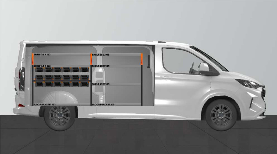 RACK is een nieuwe, toonaangevende bedrijfswageninrichting voor de Ford Custom & VW Transporter L2. Dit is de perfecte oplossing voor wie goede opbergmogelijkheden nodig heeft voor zijn assortiment van bijv. schroeven, koppelingen, bouten, boren en meer. De bedrijfswageninrichting is geoptimaliseerd met in totaal 18 van onze nieuwe, verdeelbare modulaire bakken. De modulaire bakken worden op vaste rails uitgetrokken en zijn zo gemakkelijk toegankelijk. De voorzijde van de modulaire bakken is ontworpen voor een optimale toegankelijkheid en kan worden aangevuld met transparante fronten en dwarswanden, die elke 60 mm kunnen worden aangebracht.