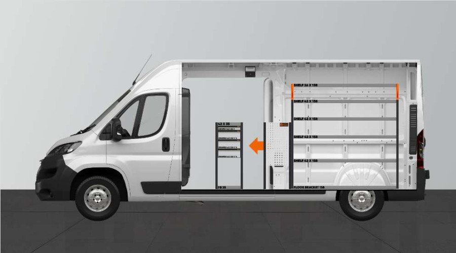H-SDH4-420 is een topper voor iedereen die de opslagcapaciteit van zijn Proace Max, Boxer, Ducato & Jumper L3 wil optimaliseren. De inrichting is 420mm diep en heeft 4 lades op kogellager rails met uiteenlopende afmetingen om zo verschillende opslagmogelijkheden te creëren. De lades kunnen uitgetrokken worden in rijrichting en bieden een duidelijk overzicht vanaf de zijdeur. Deze kunnen uitgebreid worden met onze lade verdelers om het kleinere assortiment optimaal te organiseren. Onze module bakken zijn een populaire aanvullingen voor de schapruimte achter de ladekast. Het laadgewicht van de modulebakken op de kogellager rails is 35kg/st. De binnenmaat van de lades is (mm) B-308, D-387, H-60 en H-130.