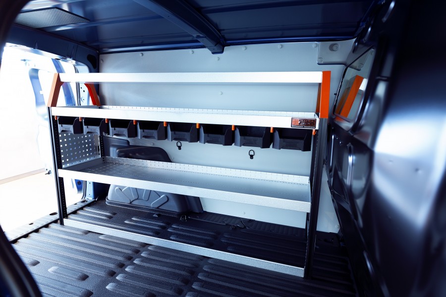 Met onze bedrijfswageninrichting V-Enkel Plus voor de linkerkant van uw bedrijfsvoertuig krijgt u meer orde dankzij onze slimme modulebakken.