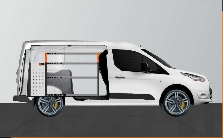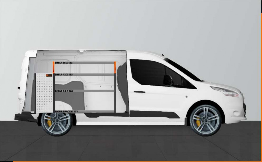 Een bedrijfswageninrichting voor wie handig en snel toegang wil tot veel laden. Deze bedrijfswageninrichting voor de Ford Connect L2 biedt ook de mogelijkheid uw gereedschapstassen, machines en uw kleinere assortiment op te bergen op de legplanken van uw bedrijfswageninrichting. De legplanken kunnen worden aangevuld met zowel legplankverdelers als onze slimme modulaire bakken. Modulaire bakken zijn verkrijgbaar in verschillende afmetingen om te voldoen aan uw behoeften.