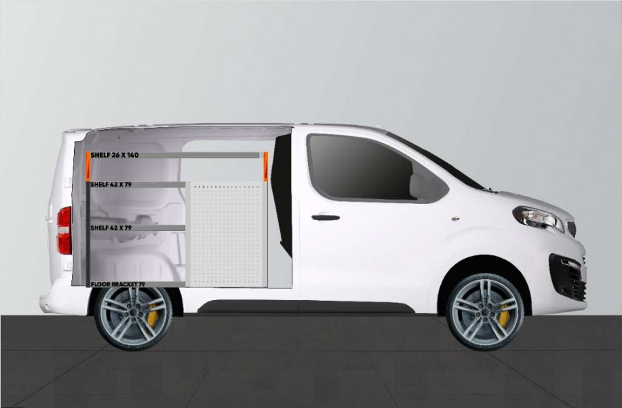 Met een combinatie van laden en legplanken is dit een zeer populaire bedrijfswageninrichting die geschikt is voor Expert, Jumpy, Vivaro, Scudo & ProAce L2