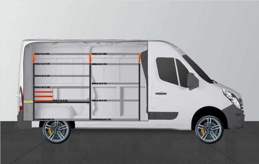 Een populaire bedrijfswageninrichting voor wie goede opbergmogelijkheden nodig heeft voor zowel kleinere onderdelen als gereedschapstassen en machines. Deze onderhoudsinrichting bevat 3 assortimentshouders die zijn aangepast aan de populairste assortimentskoffer op de markt, de Racco Carrylight. Voeg deze assortimentskoffers zeker toe aan uw bedrijfswageninrichting. De inrichting is ideaal voor uw Opel Movano, Renualt Master & Nissan NV400.