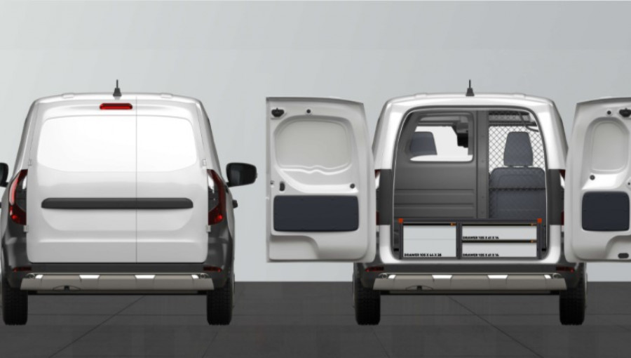 De laden aan de achterzijde hebben een laadlengte van 1035 mm en 598 mm on elke zijdeur.
