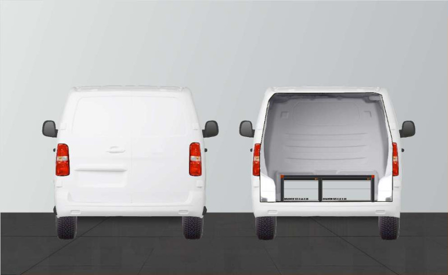 De dubbele laadvloer is geschikt voor de Peugeot Expert L2, Opel Vivaro L2 2020-, Citroën Jumpy L2 en Toyota Medium met Standaard comfortwand.