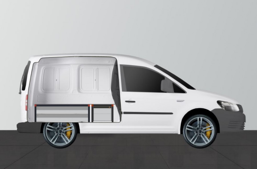 De dubbele laadvloer is geschikt voor de Volkswagen Caddy L1 met een Loyds-scheidingswand uit het modeljaar 2004.