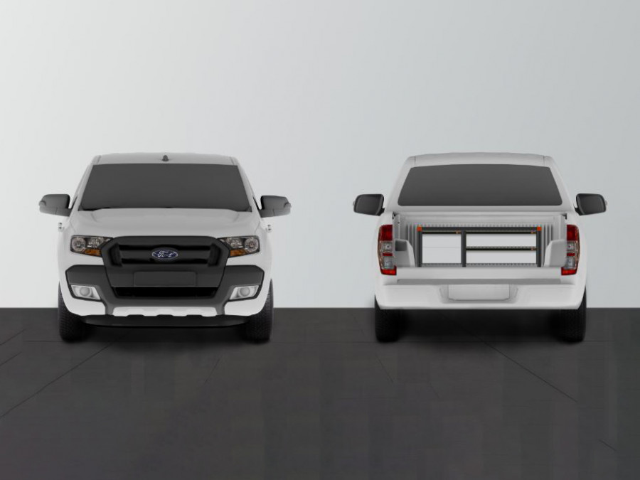 Dubbele laadvloer met 3 uitschuifbare lades voor de Ford Ranger Double Cab.