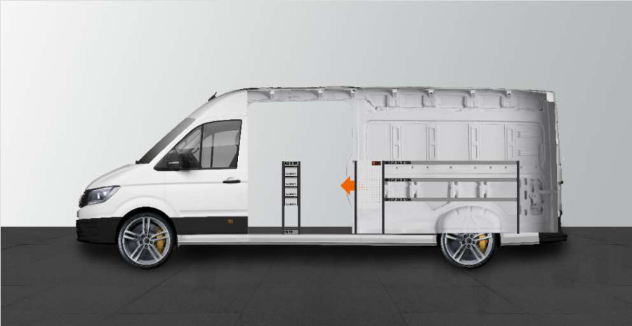 Eine Fahrzeugeinrichtung mit leicht zugänglichen Schubladen für reibungsloses Arbeiten im Man TGE & VW Crafter L4.