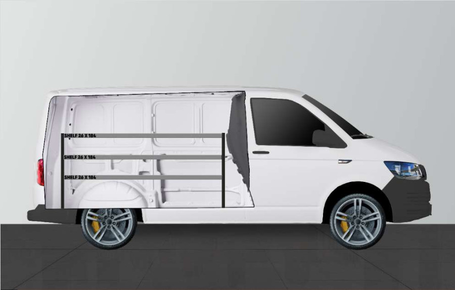 Eine Fahrzeugeinrichtung für alle, die die Breite ihres Volkswagen Transporter L1 beibehalten möchten. Die Einrichtung hat eine Tiefe von nur 262,5 mm und bietet gute Aufbewahrungsmöglichkeiten für Kleinteile, z. B. Schraubenpackungen und kleinere Artikel, geeignet für Hausmeister, Elektriker und Heizungs- und Sanitärinstallateure. Es besteht die Möglichkeit, die Einrichtung durch unsere cleveren Modulboxen zu ergänzen. An den Regalwänden lässt sich durch unsere Smartboxen zusätzliche Staufläche gewinnen.
