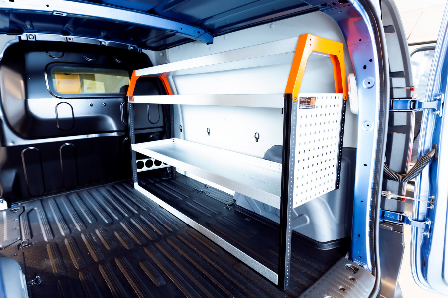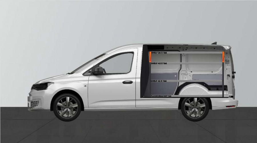 Eine Fahrzeugeinrichtung für Ihren VW Caddy Cargo & Ford Connect L2, die gute Aufbewahrungsmöglichkeiten für Werkzeugtaschen/-koffer, Maschinen und Kleinteile bietet. Die Regalböden der Einrichtung haben eine Tiefe von 420 mm, dank derer sich die meisten auf dem Markt erhältlichen Werkzeugtaschen/-koffer problemlos verstauen lassen. Das obere Regal mit 262,5 mm wird oft durch unsere Modulboxen ergänzt, um Platz für die Aufbewahrung von Kleinteilen zu schaffen. Vergessen Sie nicht, die Werkzeugtafel der Regalwand zu nutzen.