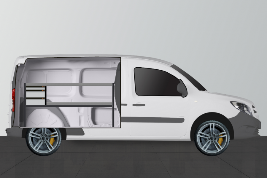 En enklare lösning av vår populär serviceinredning med både lådor och hyllor till Mercedes Citan Extra Lång & Renault Kangoo Maxi.