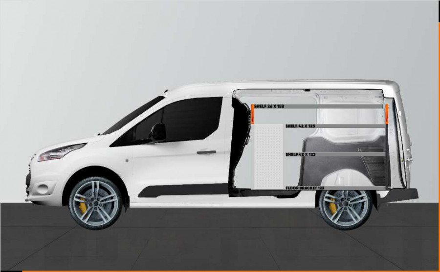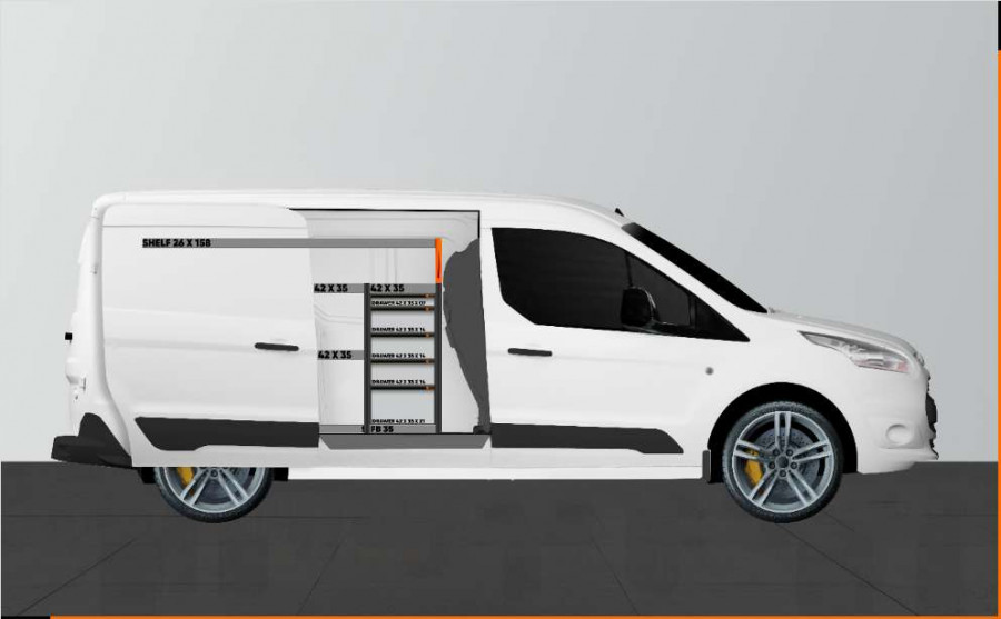 Mit dieser Fahrzeugeinrichtung erhalten Sie viel Stauraum in Regalen und Schubladen, geeignet für den Ford Connect L2. (Rücknahme/Umtausch ausgeschlossen)