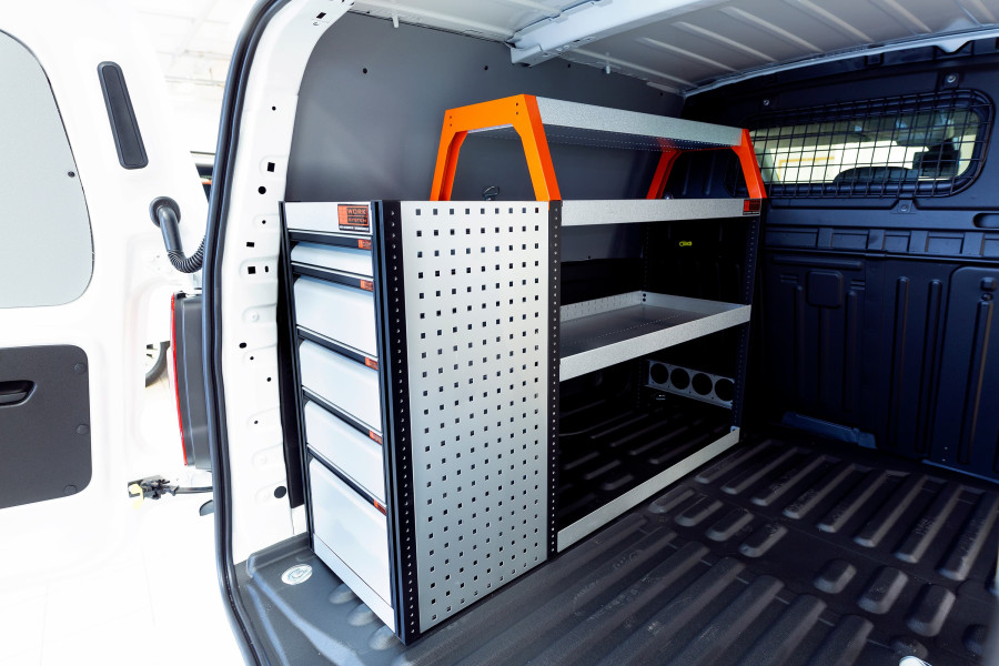 Mit der Serie Work System V-LS3 bieten wir Ihnen ein Fahrzeugregal für Berlingo, Combo, Proace City & Partner L2, bestehend aus einem Regal mit drei Schubladen, ausgestattet mit Kugellagerschienen.