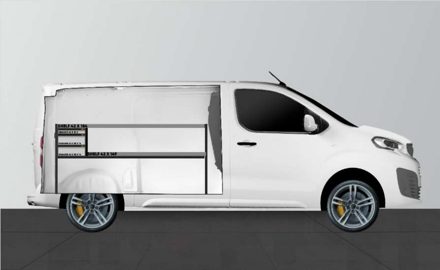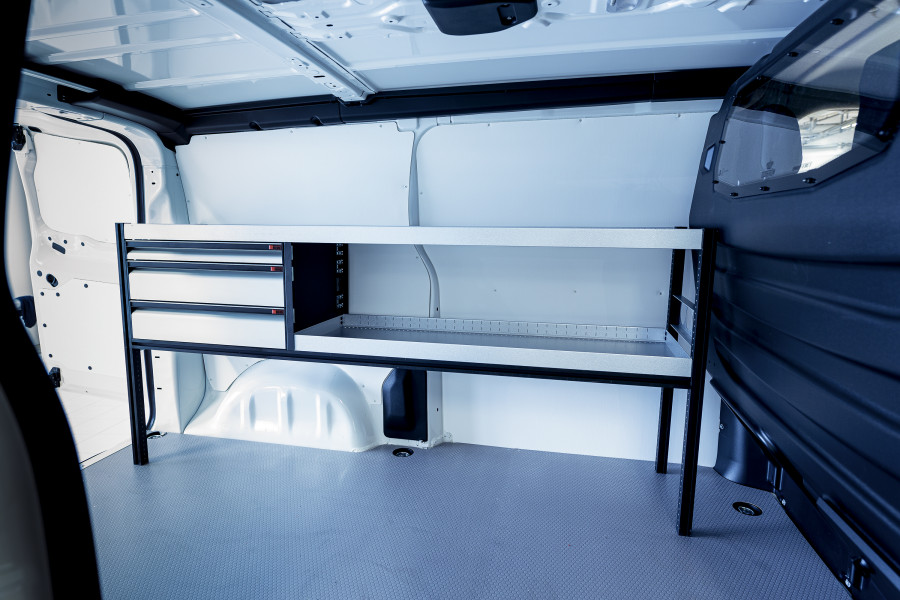 Eine einfachere Lösung unserer beliebten Fahrzeugeinrichtung mit Schubladen und Regalen für Expert, Jumpy, Vivaro, Scudo & ProAce L2.