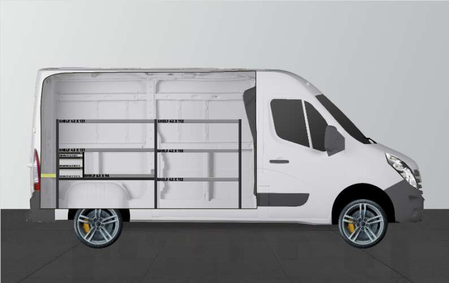 Eine preisgünstige Alternative für alle, die eine Kombination aus Schubladen auf Kugellagerschienen und Regalböden für ihren Opel Movano, Renault Master & Nissan NV400 suchen. Dank einer Tiefe der Einrichtung von 420 mm lassen sich die meisten auf dem Markt erhältlichen Werkzeugtaschen/-koffer problemlos verstauen. Die Schubladen werden gerne durch unsere Schubladeneinsätze und Trennwände ergänzt, die es Ihnen erleichtern, Ordnung in Ihr Kleinteilsortiment zu bringen.