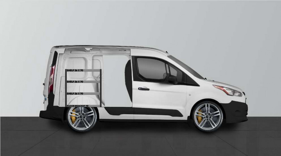 Un aménagement utilitaire un peu plus court avec une profondeur de 262,5 mm pour ceux qui souhaitent conserver la largeur de leur Ford Connect L1. L’aménagement offre d’excellentes possibilités de rangement pour les articles de petite taille comme les boîtes de vis et les petits objets pour les professionnels du bâtiment, les électriciens, les plombiers et les chauffagistes. L’aménagement est adapté aux véhicules avec ou sans porte latérale et peut être complété par nos bacs modulaires. Une autre solution populaire consiste à compléter les panneaux perforés avec nos accessoires Smartbox ou crochets pour optimiser l’espace de rangement.