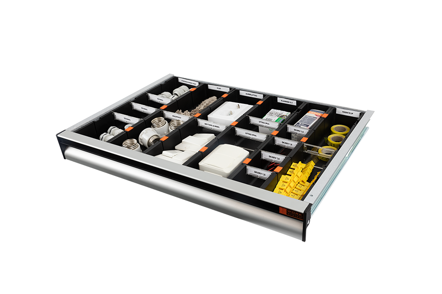 Nos inserts tiroirs sont très pratiques pour ranger les petits articles et accessoires d’outillage. Les inserts peuvent être montés dans tous nos tiroirs. Ils peuvent être complétés par des séparateurs pour créer plusieurs compartiments de différentes tailles. Les inserts et séparateurs peuvent chacun être assortis d’un porte-étiquette pour optimiser le rangement de votre utilitaire. Ils sont disponibles en deux hauteurs de 52,5mm et 105mm, et en quatre largeurs de 70mm, 80mm, 105mm et 160mm. Ils sont fabriqués en polypropylène recyclé.