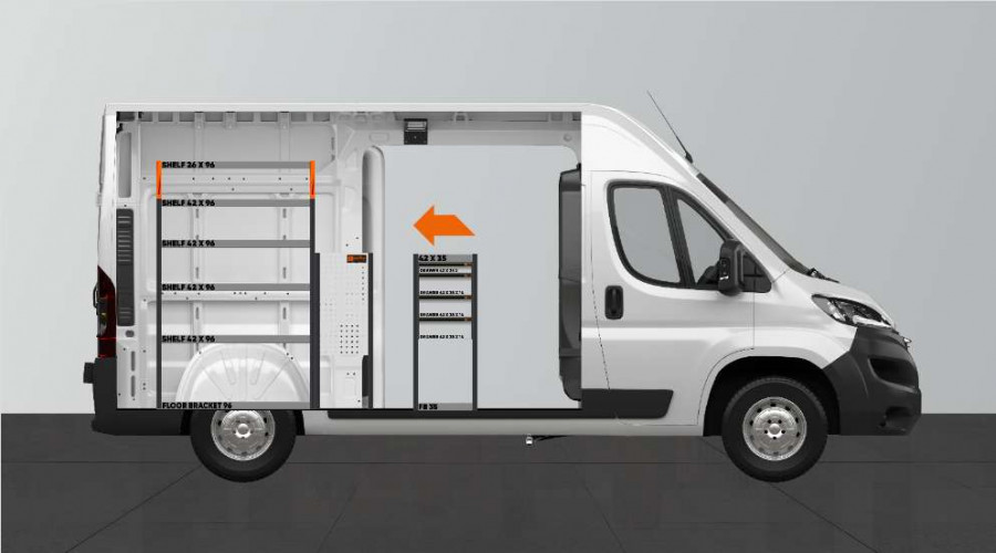 Grâce à ses tiroirs et étagères, cet aménagement utilitaire est très apprécié des conducteurs de Expert, Jumpy, Vivaro, Scudo & ProAce L2
