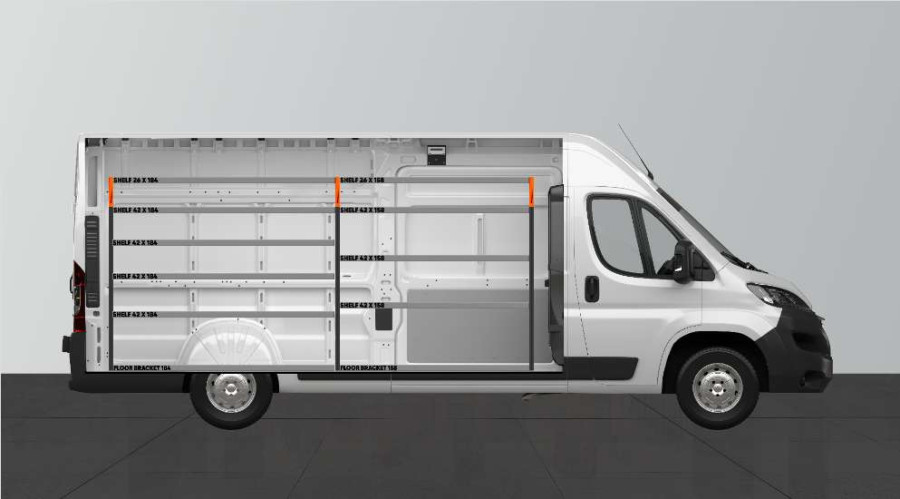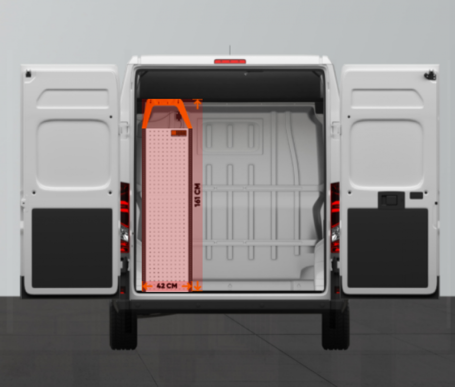 Espace de rangement pratique pour divers assortiments, conçu pour Proace Max, Peugeot Boxer, Fiat Ducato et Citroën Jumper L4H2.