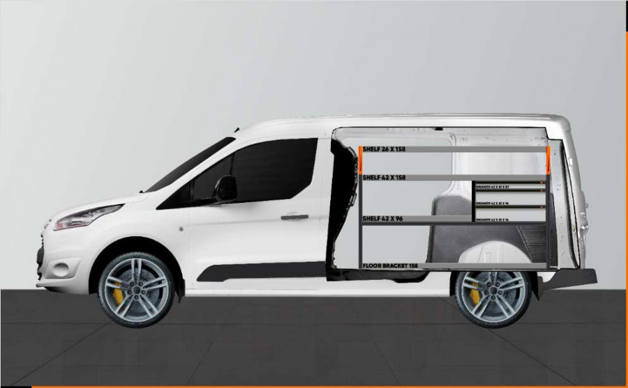 Grâce à ses tiroirs et étagères, cet aménagement utilitaire est très apprécié des conducteurs de Ford Connect L2