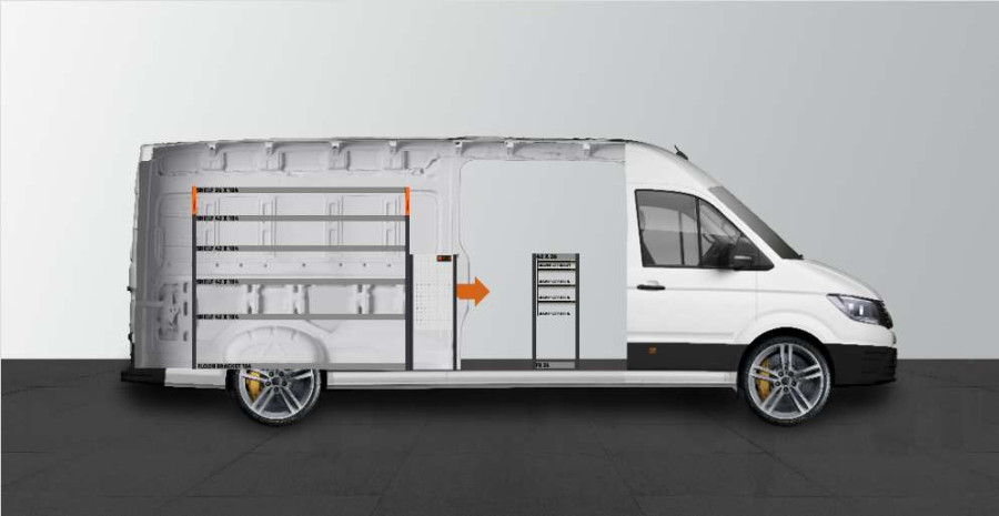 Aménagement utilitaire avec tiroirs facilement accessibles par la porte latérale de votre Man TGE & VW Crafter L4.