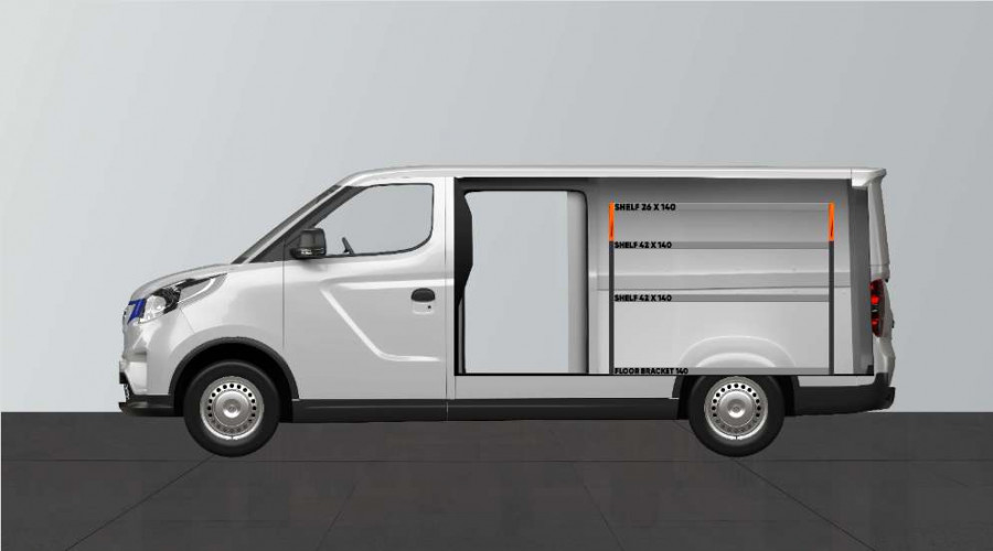 L’aménagement SHORT42 vous offre un excellent espace de rangement pour votre Maxus e-Deliver 3 L2.