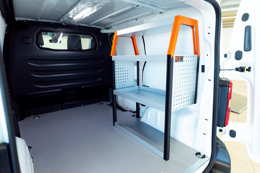 Un aménagement utilitaire un peu plus court pour votre Maxus e-Deliver 3 L2. Avec une profondeur de 420 mm l’aménagement constitue une excellente alternative de rangement pour les mallettes à outils et les outils électriques ainsi que pour les petites pièces. Les étagères de 420 mm de profondeur permettent d’accueillir parfaitement la plupart des mallettes à outils actuellement disponibles sur le marché. L’étagère du haut de 262,5 mm est souvent combinée à nos bacs modulaires pour y ranger les petits objets. L’aménagement est adapté aux véhicules avec ou sans porte latérale et le panneau perforé peut être équipé de nos accessoires Smartbox, crochets, etc.