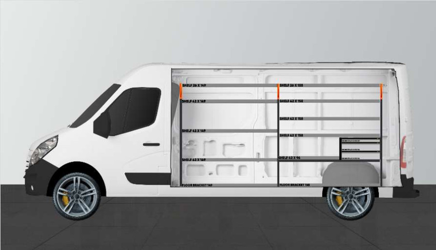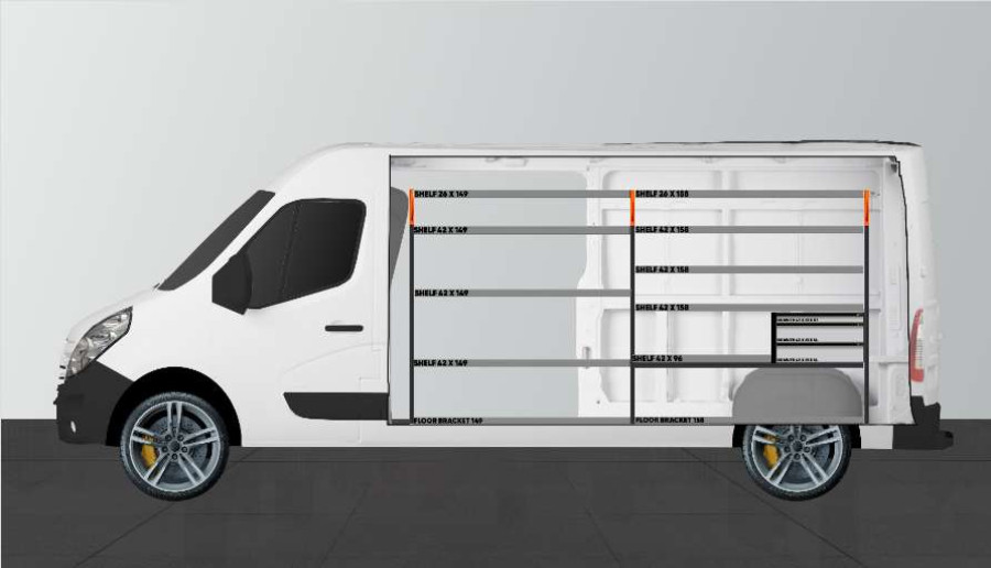 Grâce à ses tiroirs et étagères, cet aménagement utilitaire est très apprécié des conducteurs de Movano, Master & NV400 L3