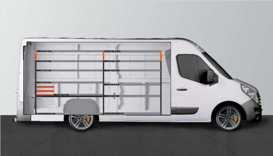 Un aménagement utilitaire idéal pour ceux qui recherchent une solution de rangement polyvalente pour mallettes portatives et machines. Cette étagère comprend trois supports pour mallettes spécifiquement conçu pour nos mallettes de taille moyenne Raaco Carrylight. Nous proposons les mallettes en option. Aménagement utilitaire parfaitement adapté à votre Opel Movano, Renault Master & Nissan NV400 L3.