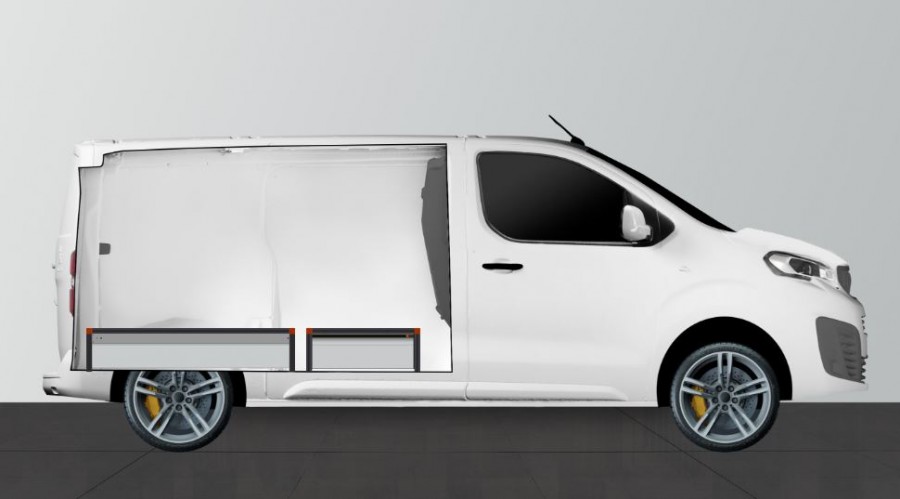 Le double plancher convient au Peugeot Expert L2, à l’Opel Vivaro L2 2020-, au Citroën Jumpy L2, au Fiat Scudo et au Toyota ProAce Long Medium avec paroi Prefence.